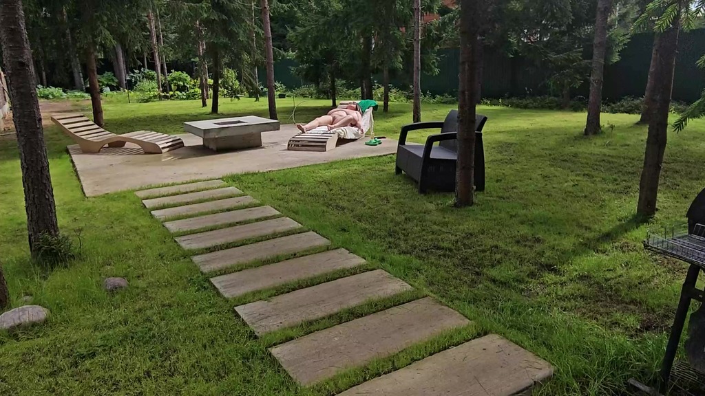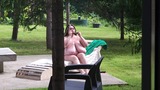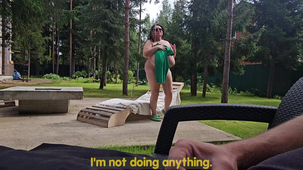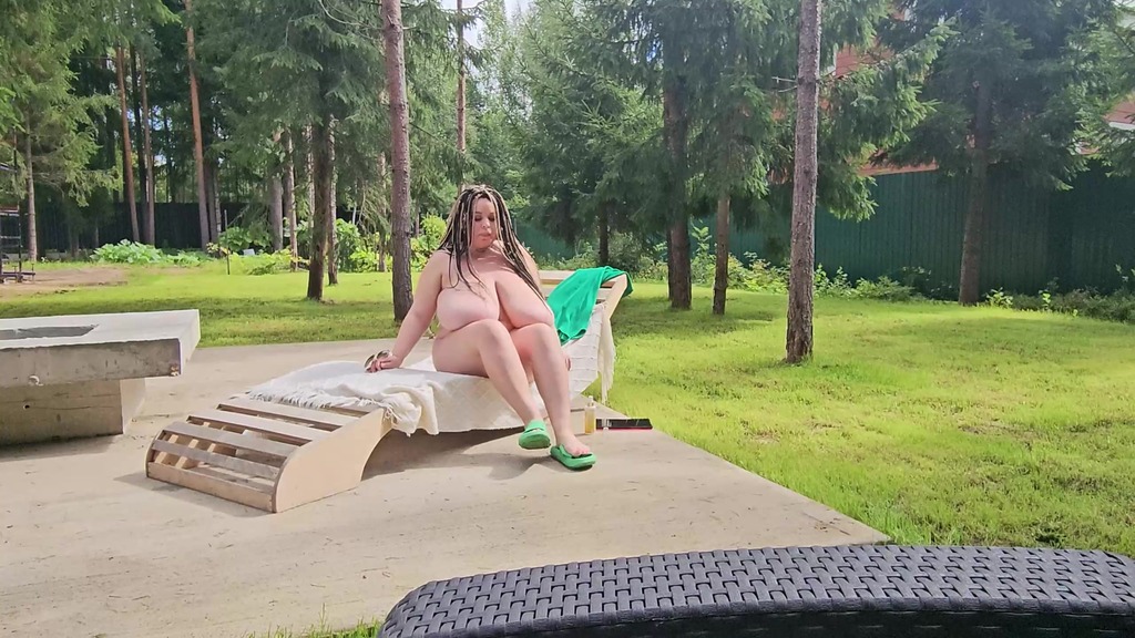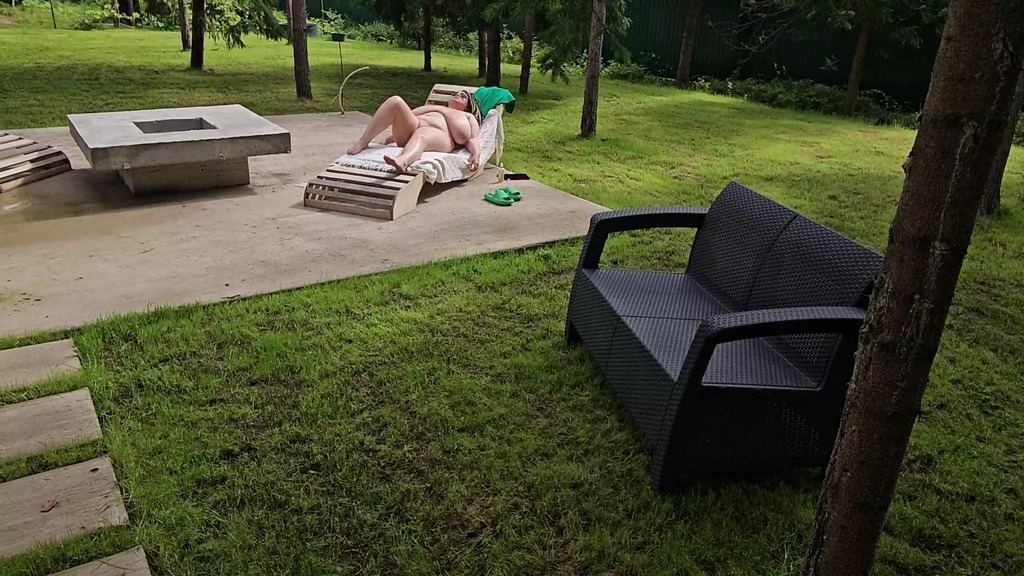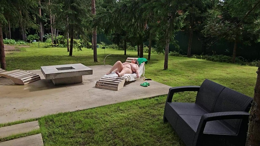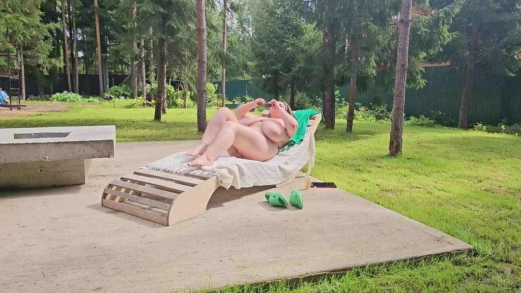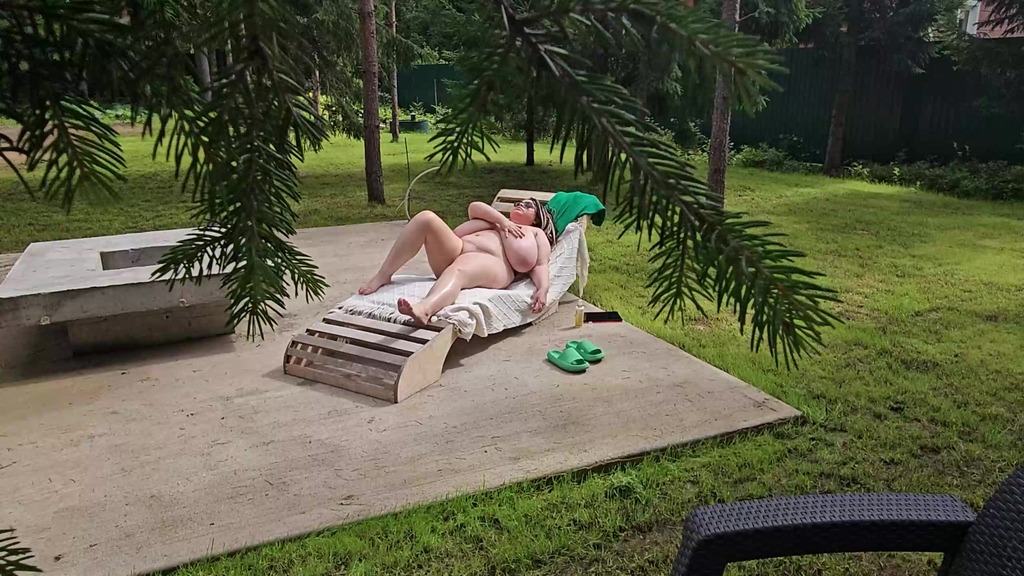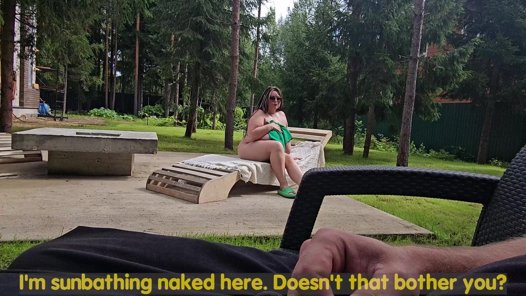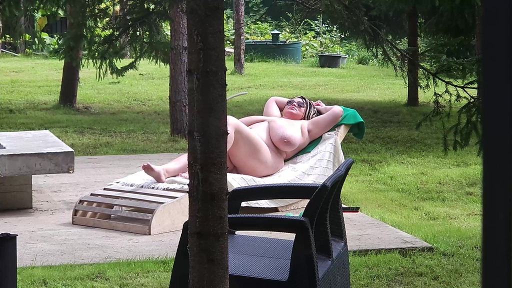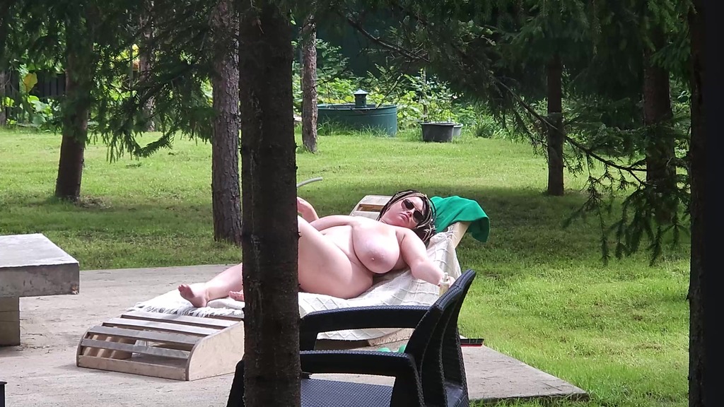 i saw my busty stepmom anna katz sunbathing naked. i came up and started jerking off, she saw me and offered to help