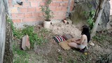 beautiful young people having sex when their parents are not there, it starts to rain and so they have more time