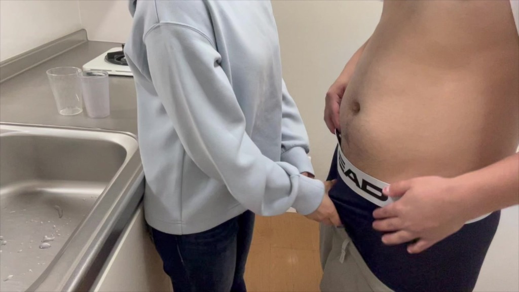 「太いちんちんで今挿れて…気持ちよくなりたいの。」2週間ぶりの彼女とえっちで我慢できずにキッチンでSEXするカップル。