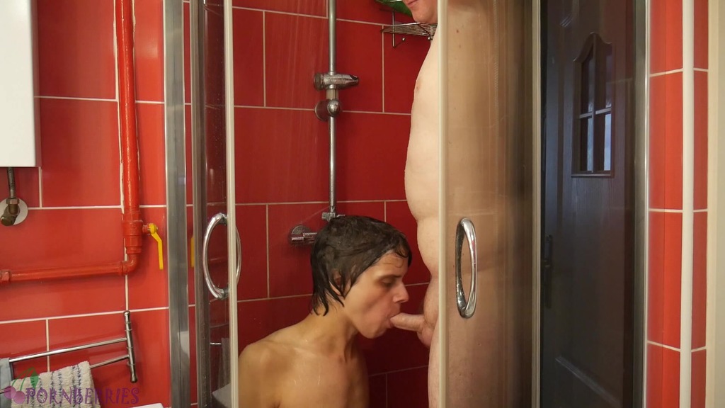 horny guys under the shower, hair wash with cumshot