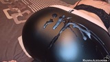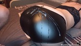 Sexy girl in a mask sucks a big dick and passionately fucks doggy style until cumshot on leather pants after a party.