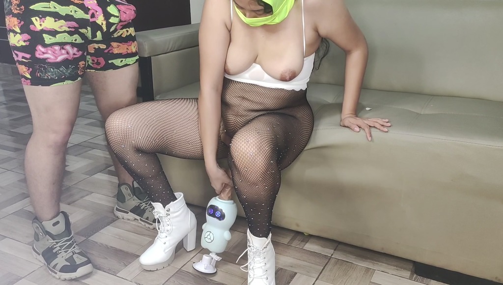 morena latina se mete su juguete al cono con ayuda de hombre mayor y ella le da mamada de polla