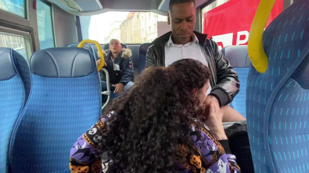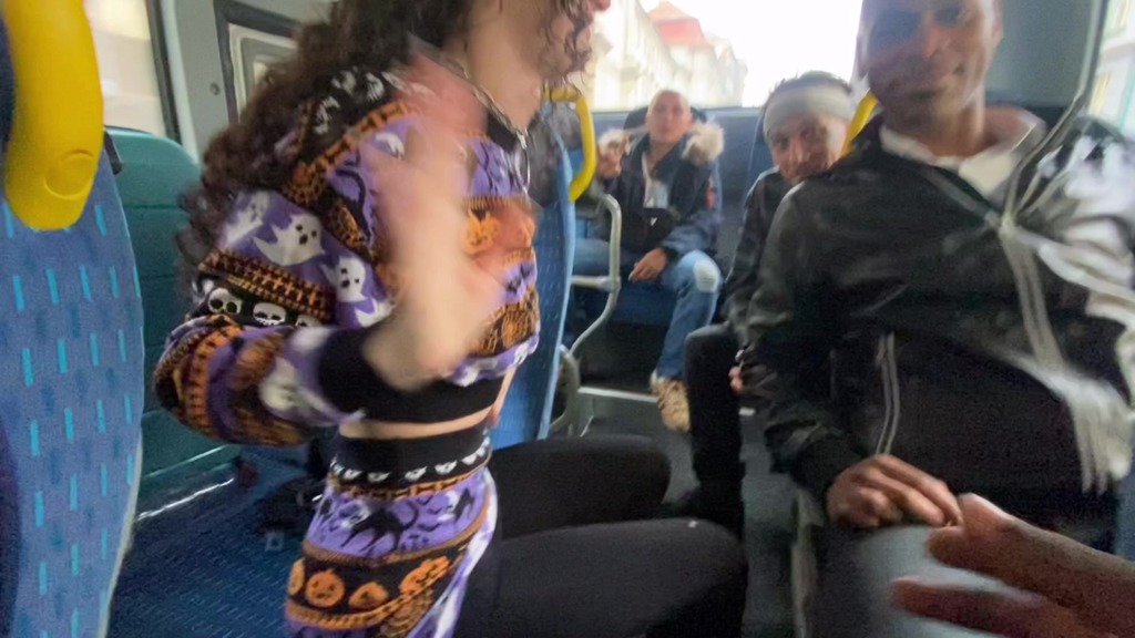 I am headed to a gangbang, shoot, and all of the mail. Talent is taking the same bus as me. It’s time for a warm-up and all the guys are willing to use my holes. No one cares that everyone on the street can see and the bus driver is watching in the mirror, but it makes me a bit shy!